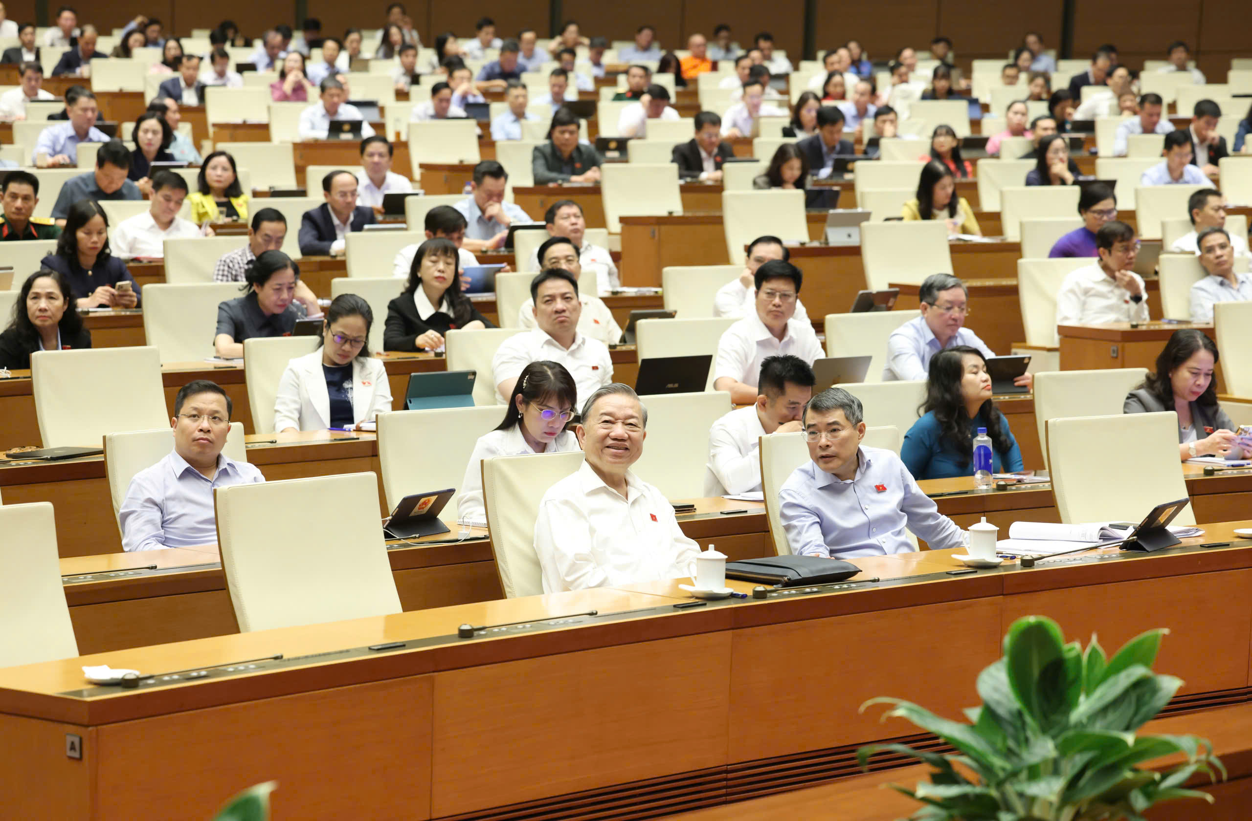 Tổng Bí thư, Chủ tịch nước Tô Lâm và Thủ tướng Lê Minh Hưng cùng các đại biểu dự phiên họp chiều 10-4. Ảnh: QUANG PHÚC