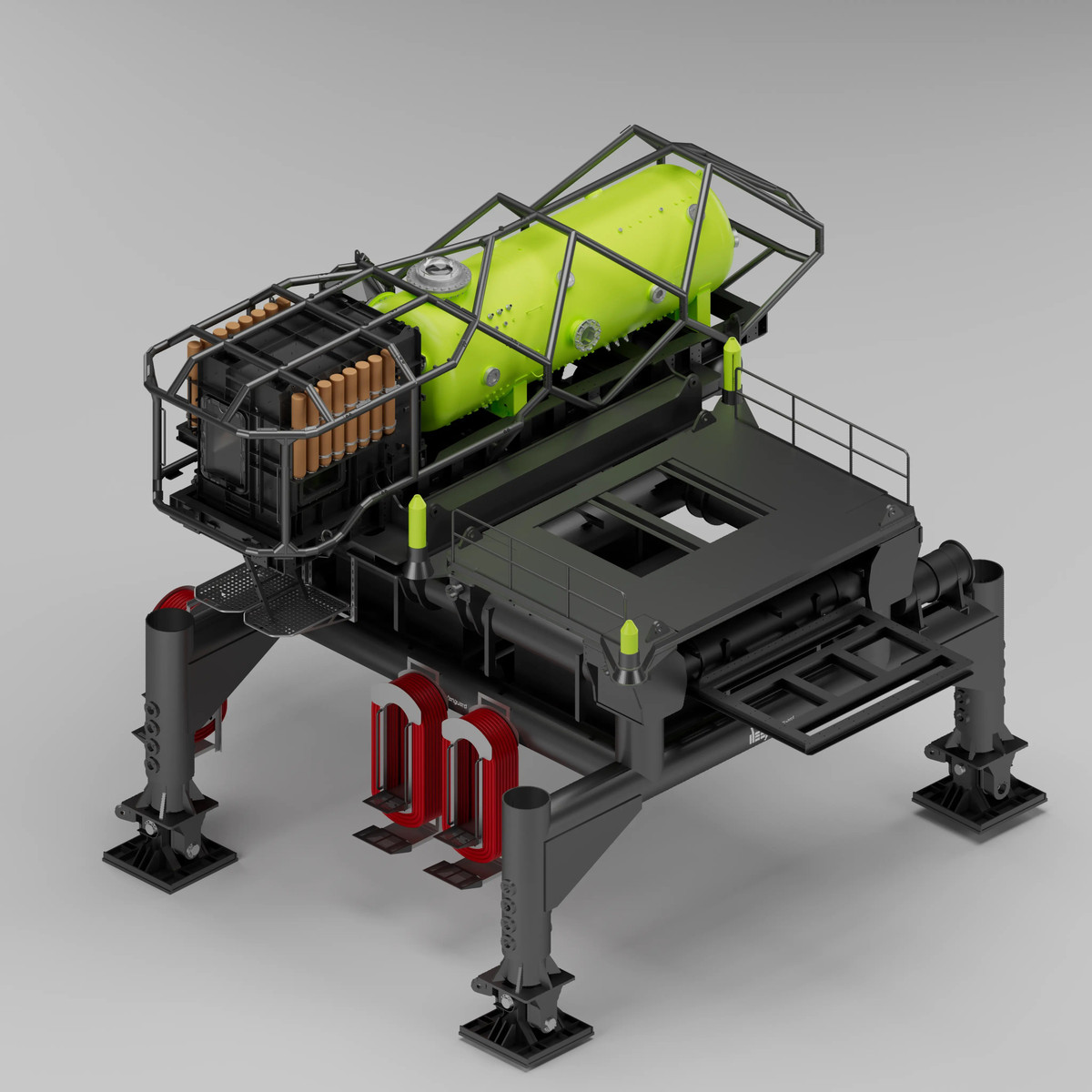 Một phao hỗ trợ bề mặt cung cấp không khí, nước, loại bỏ chất thải, điện và thông tin liên lạc đến môi trường sống bằng thép. Nhờ vậy, các nhà khoa học có thể ở lại trong 1 tuần hoặc lâu hơn. Ảnh: DEEP.