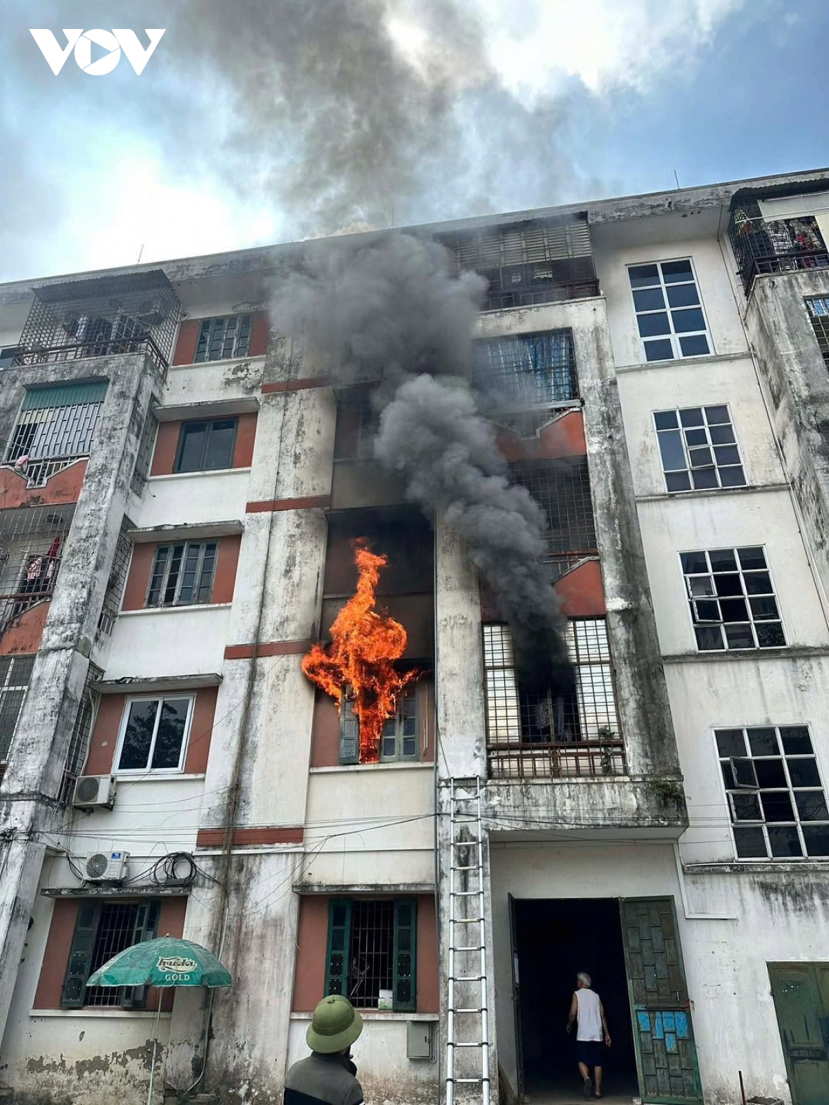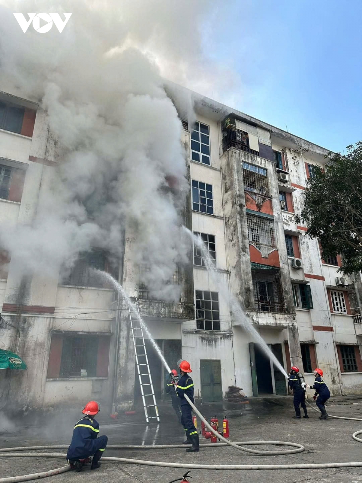 Lúc này đám cháy đang lan sang khu vực xung quanh và lên tầng 3 của chung cư 5 tầng. Chiến sĩ chữa cháy đã hướng dẫn thoát nạn, cứu được 2 người bị nạn ra ngoài an toàn. Đến khoảng 10h40 cùng ngày, đám cháy cơ bản được khống chế, dập tắt.