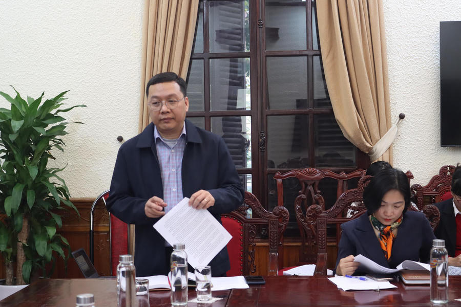 Ông Nguyễn Hùng Huế báo cáo tại cuộc họp.