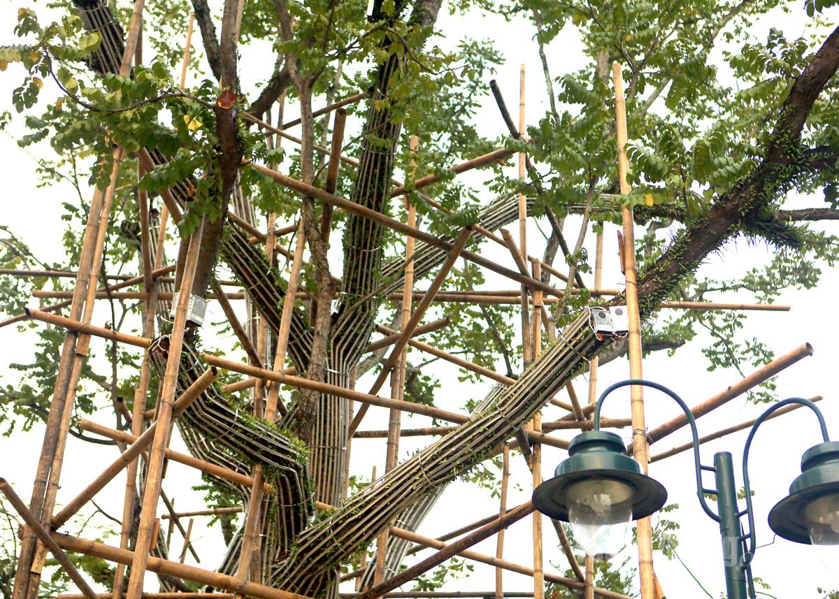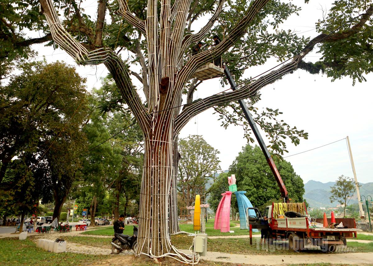 Theo quan sát của phóng viên Báo và phát thanh, truyền hình Tuyên Quang, toàn bộ cây xanh được trang trí bằng hệ thống đèn có bóng led. Tuy nhiên điều đáng nói, để gắn cố định hệ thống đèn, các công nhân đã dùng đinh vít để cố định hệ thống dây, hơn nữa sử dụng đèn led xung quanh có thể ảnh hưởng tiêu cực đến cây, bao gồm làm ảnh hưởng đến quá trình sinh trưởng do quang phổ không phù hợp, gây tổn thương thân cây và rễ do quá trình lắp đặt hoặc nhiệt độ, và làm thay đổi chu kỳ sinh trưởng tự nhiên của cây. Ngoài ra, ánh sáng mạnh còn gây nguy hiểm cho người đi đường và ảnh hưởng đến hệ sinh thái.