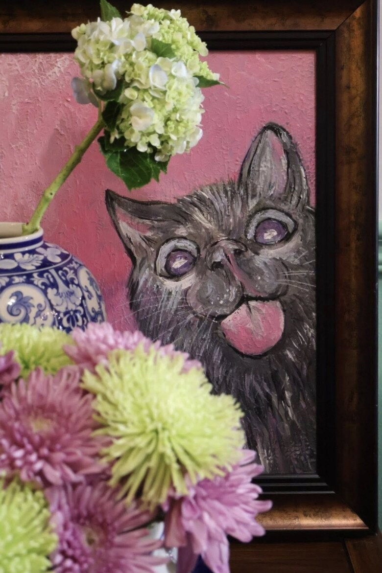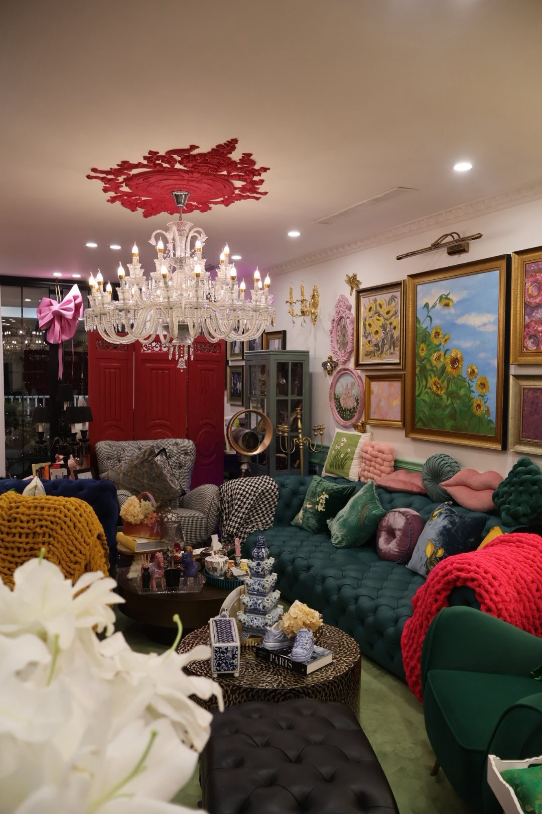 Phòng khách trưng bày nhiều nhiều bình hoa, tranh vẽ, mang đậm dấu ấn cá nhân. Ảnh: FBNV