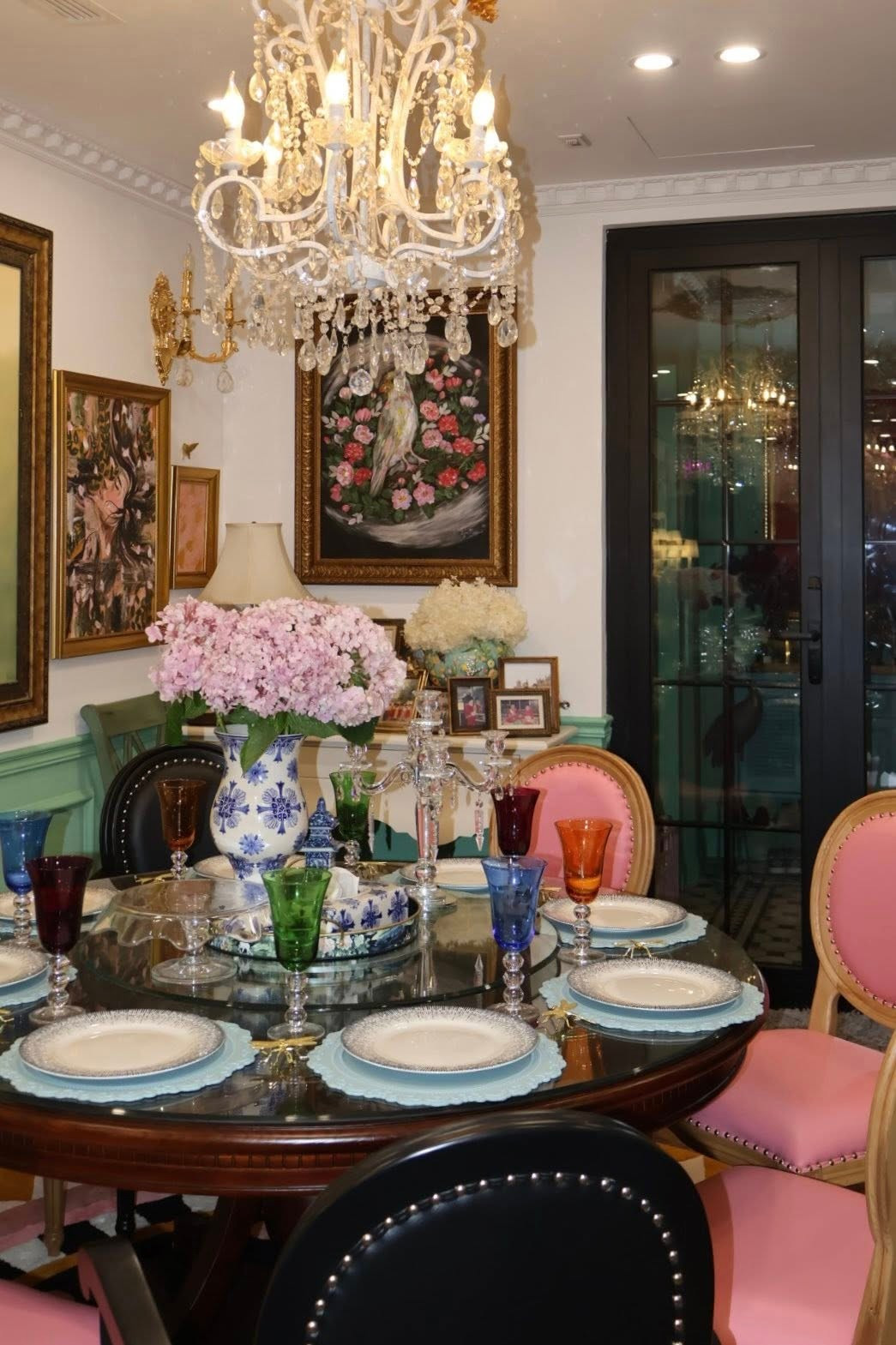 Bàn ăn xinh chứa tối đa 10 người cũng được tô điểm bằng bình hoa. Ảnh: FBNV