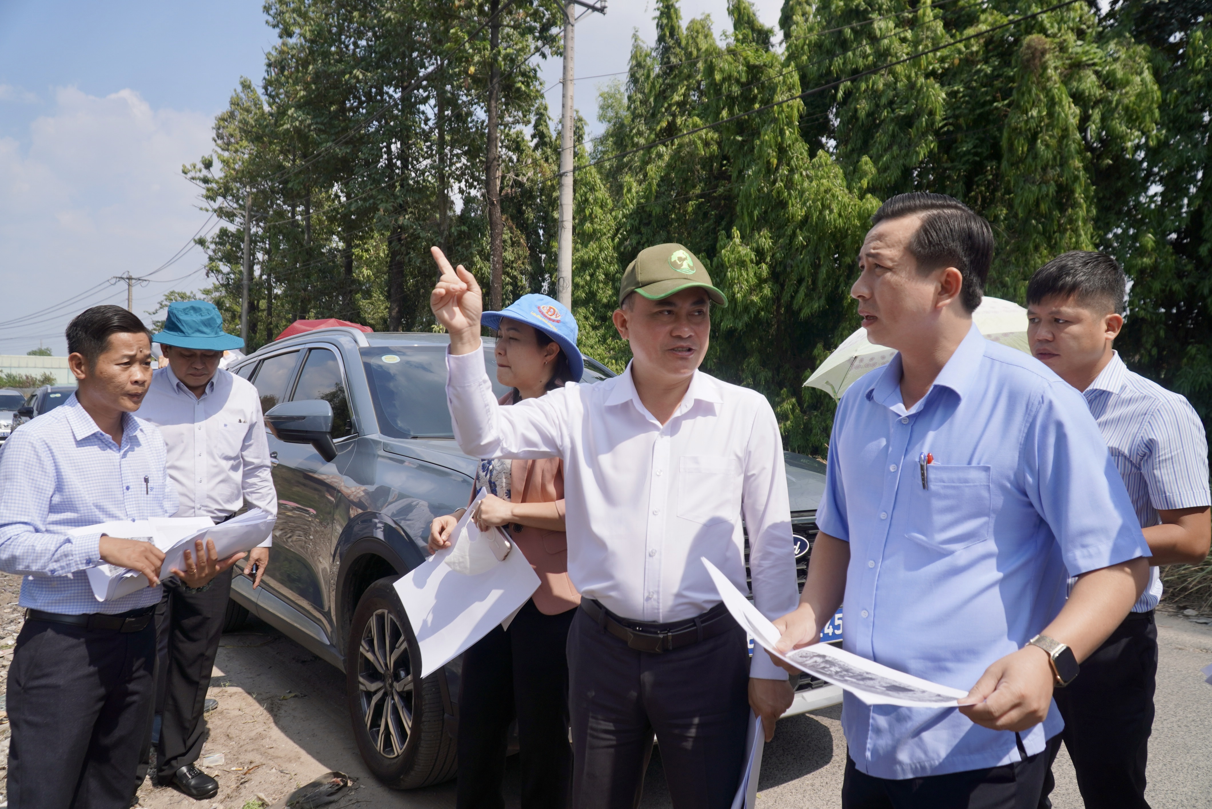 Đoàn đi khảo sát các khu vực khu vực bãi rác trên đường 768B (cách đường Đồng Khởi khoảng 500 m); khu đất công gần 2 ha cạnh bãi rác cũ; khu đất gần ngã tư Cây Sung nằm trên trục đường 768B khoảng 19 ha; khu vực ấp Ông Hường gần đường Đồng Khởi đối diện KCN Thạnh Phú rộng 23 ha.