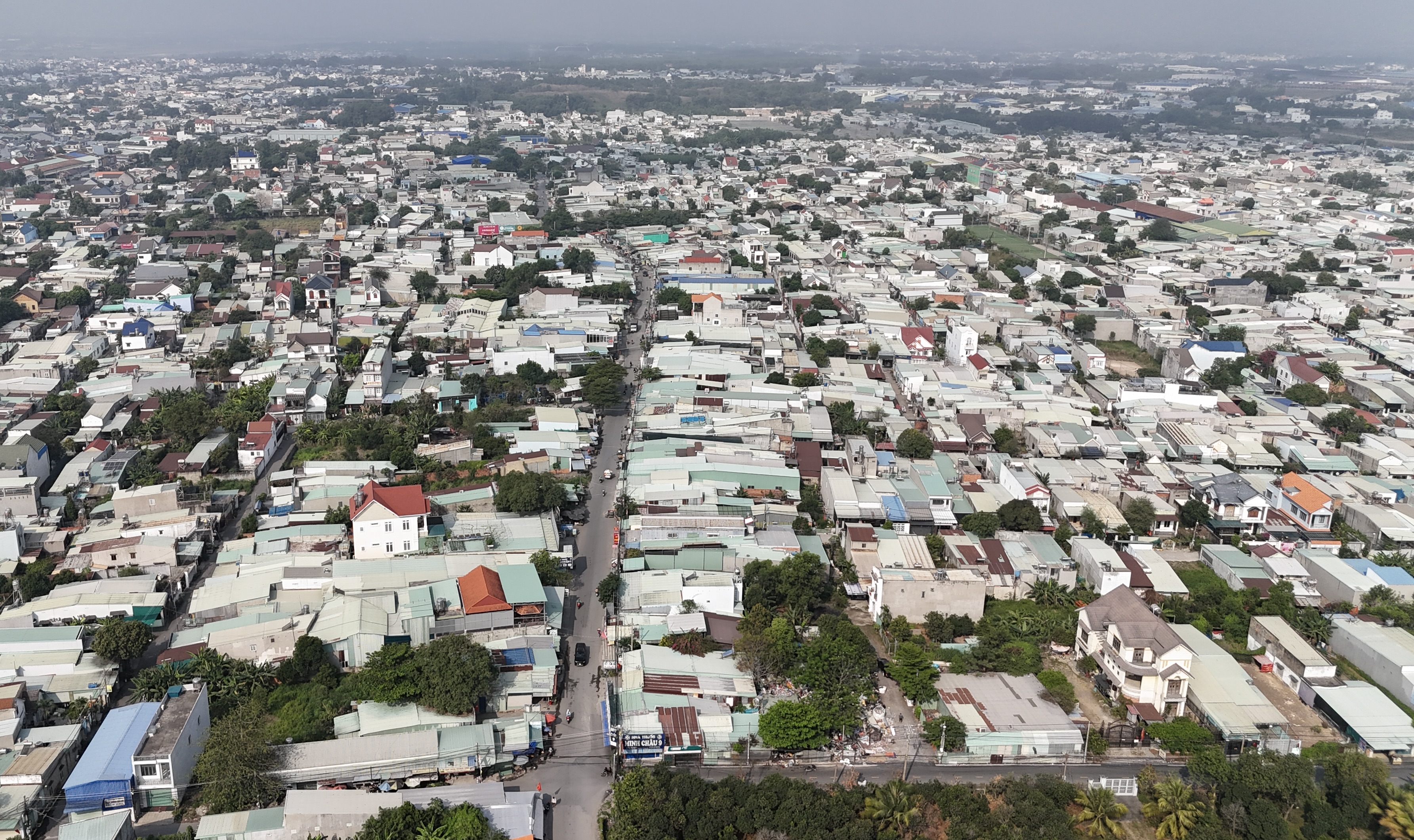 Nhà dân dày đặc tuyến đường 768B chạy dọc giữa phường Trảng Dài. Ảnh: KT
