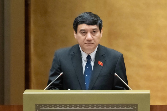 Bộ trưởng Giáo dục và Đào tạo Nguyễn Kim Sơn trình bày Tờ trình về Chủ trương đầu tư Chương trình Mục tiêu quốc gia hiện đại hóa, nâng cao chất lượng giáo dục và đào tạo giai đoạn 2026 - 2035. Ảnh: Media Quốc hội