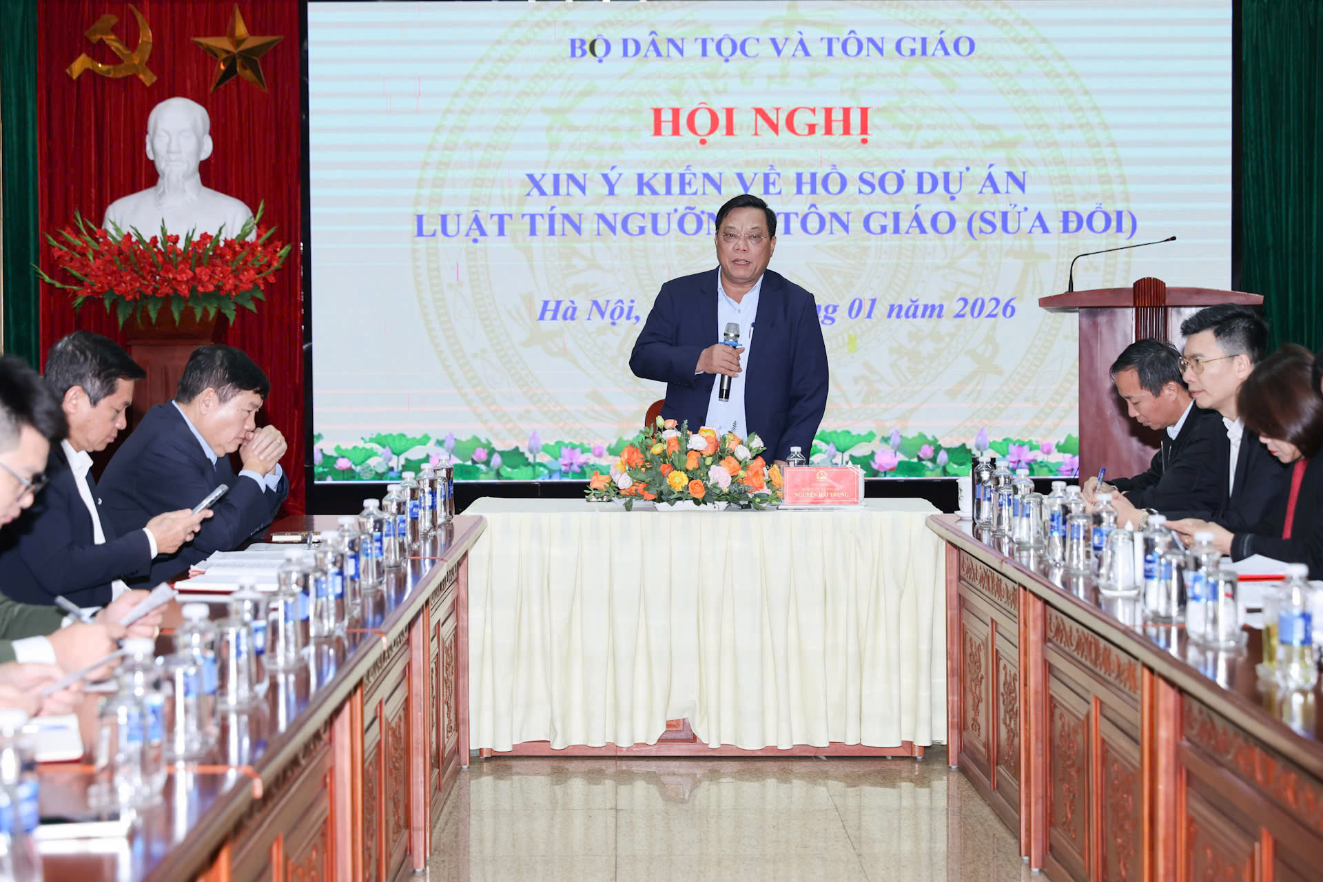 Ngày 31/12/2025, Bộ Dân tộc và Tôn giáo đã có Tờ trình số 3254/TTr-BDTTG về hồ sơ chính sách của Luật Tín ngưỡng, tôn giáo (sửa đổi). Theo đó, dự thảo Luật tập trung vào 4 nhóm chính sách gồm: Xác lập nguyên tắc, trách nhiệm của cơ quan, tổ chức, cá nhân khi thực hiện hoạt động tín ngưỡng, tôn giáo trên không gian mạng; Phân quyền, phân cấp trong lĩnh vực tín ngưỡng, tôn giáo; Bổ sung các biện pháp quản lý nhà nước; Đơn giản hóa thủ tục hành chính, đẩy mạnh chuyển đổi số trong lĩnh vực tín ngưỡng, tôn giáo.