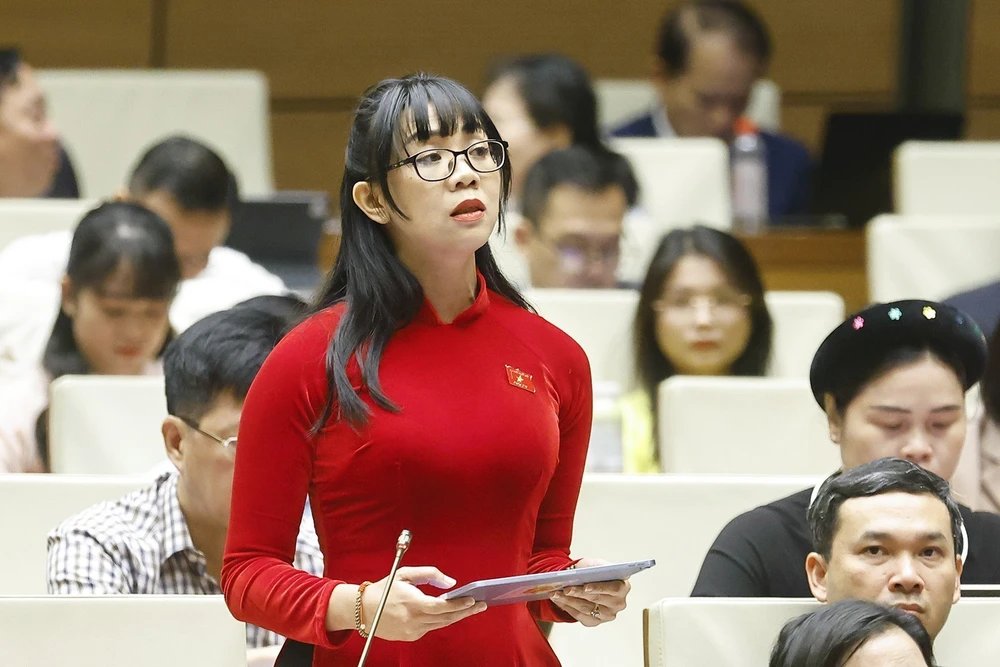 Đại biểu Quốc hội tỉnh Lâm Đồng Trịnh Thị Tú Anh phát biểu. Ảnh: Doãn Tấn - TTXVN