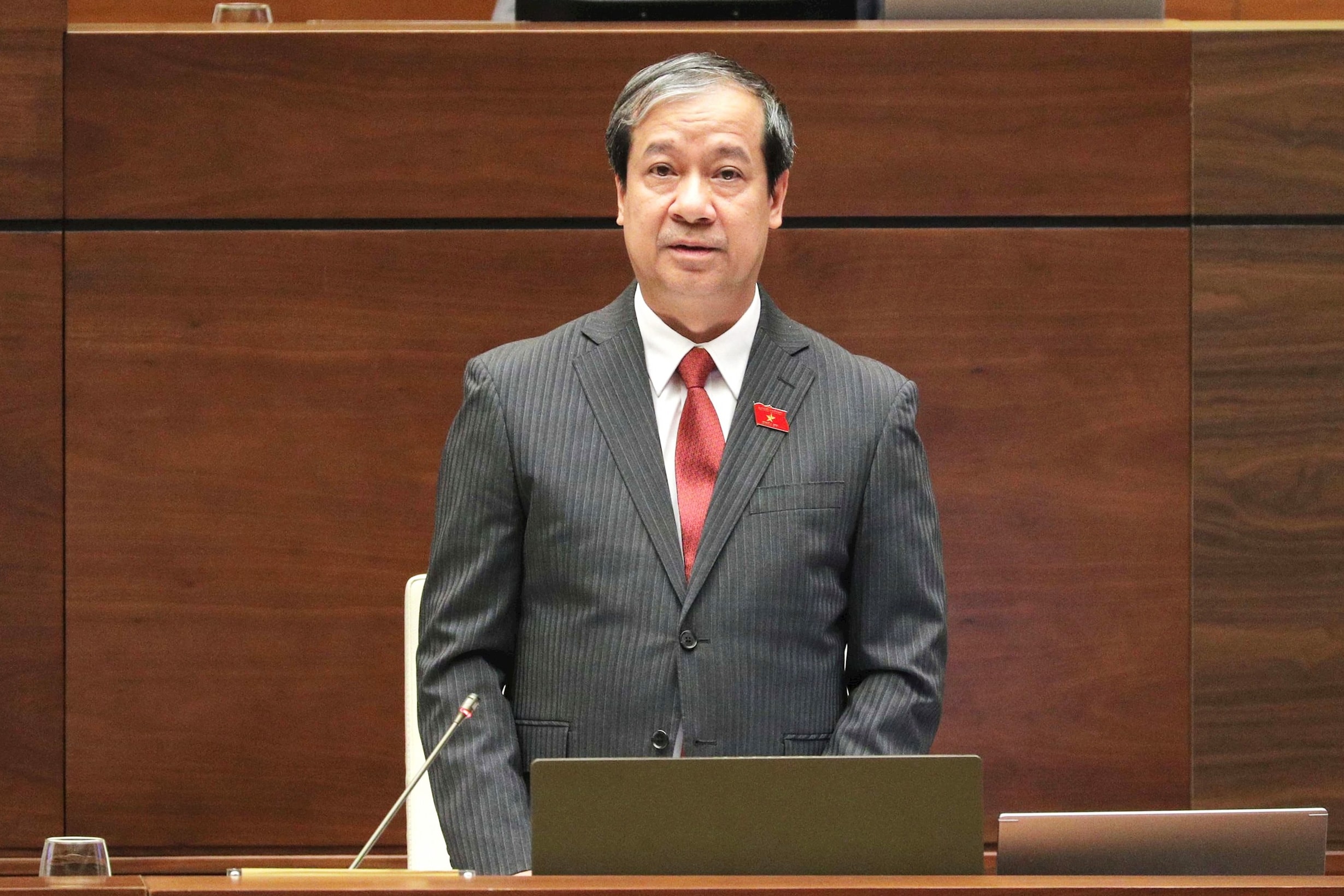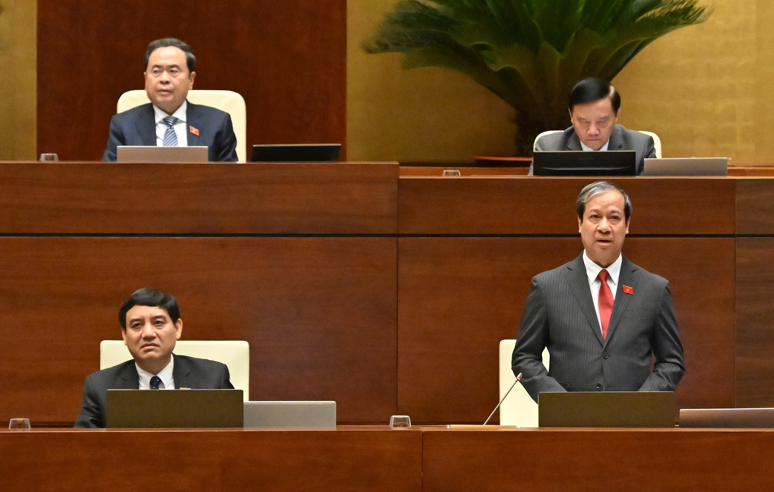 Bộ trưởng Bộ Giáo dục và Đào tạo Nguyễn Kim Sơn giải trình về những nội dung trọng tâm được các đại biểu Quốc hội đặt ra trong phiên thảo luận. Ảnh: Hồ Long