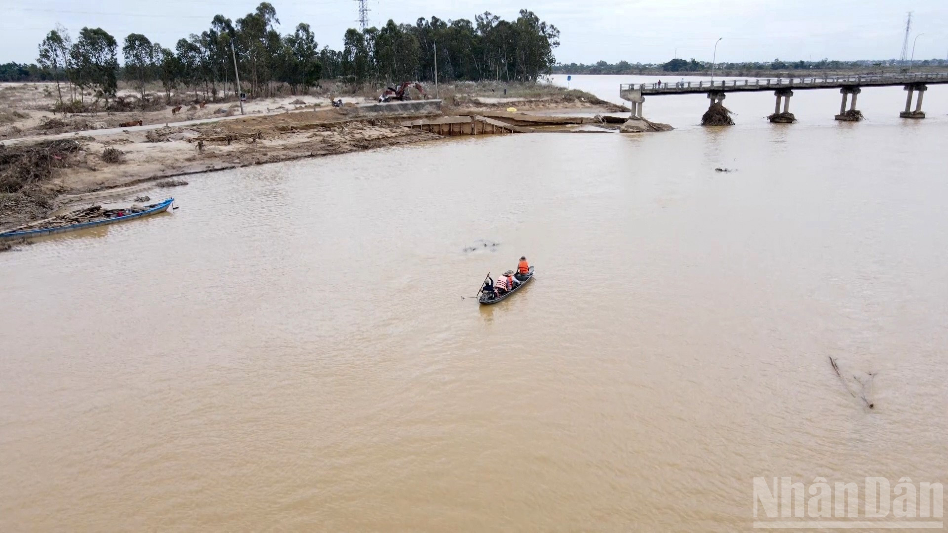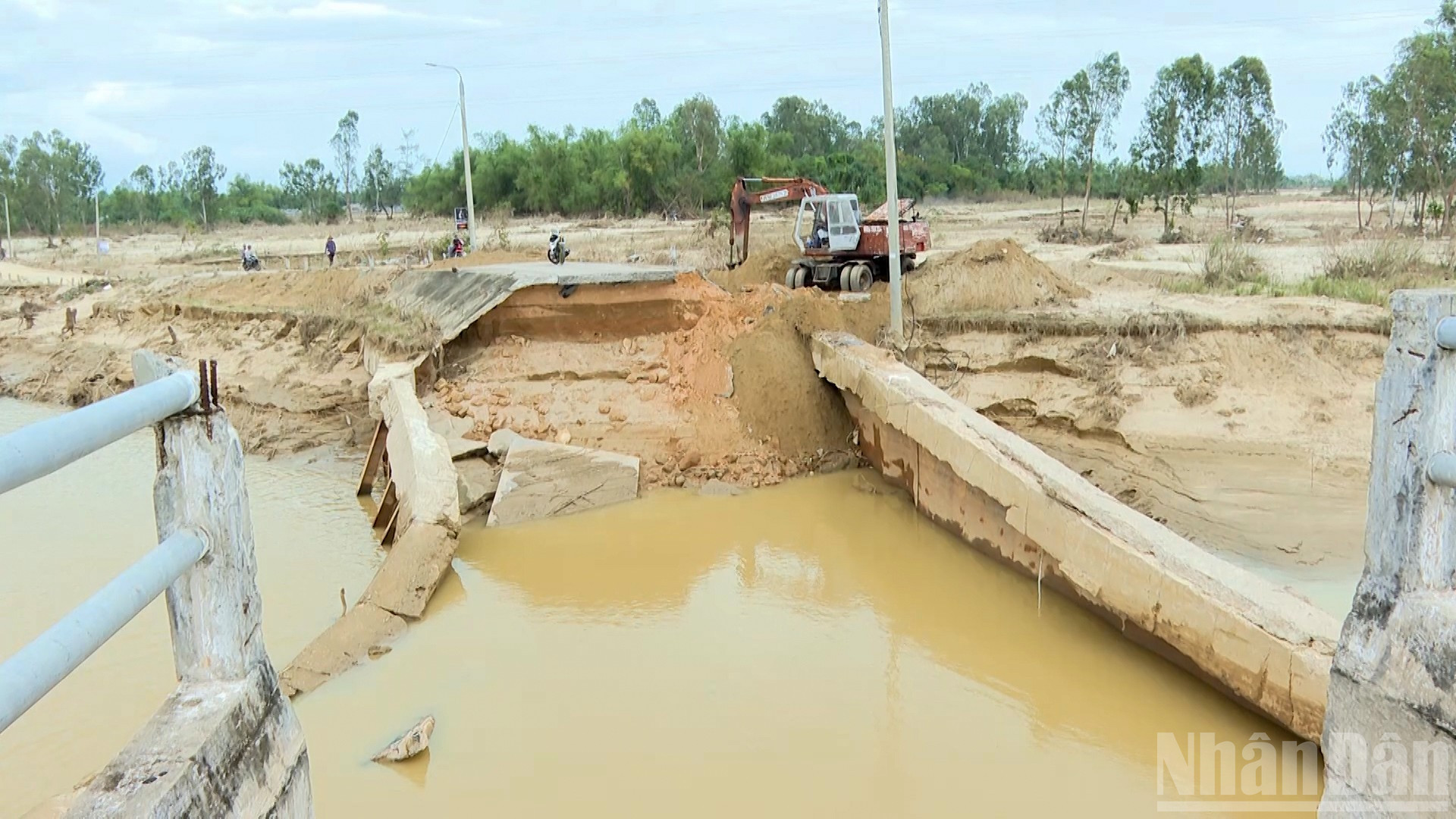 Mưa lũ đã làm cầu Bà Ngân trên Quốc lộ 14H nối liền xã Nam Phước với phường Hội An và phường Điện Bàn Đông, thành phố Đà Nẵng bị sập mố cầu và đường dẫn.