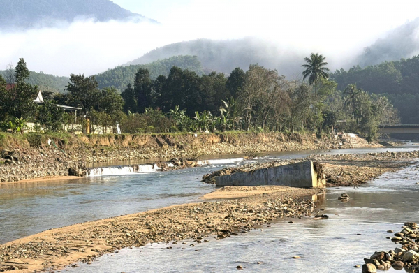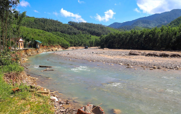 Tình trạng này khiến dòng chảy của con sông bị thay đổi, nhất là đoạn từ thác Trượt đến gần cầu Hương Hòa, xã Khe Tre. Theo ghi nhận của PV Báo CAND sáng 1/4, dòng sông Tả Trạch hiện chuyển hướng chảy áp sát vào một bên bờ khiến tình trạng sạt lở càng thêm nghiêm trọng hơn, trong khi nửa lòng sông còn lại bị cát, sỏi bồi lấp làm thu hẹp dòng chảy.