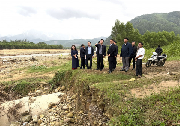 Lãnh đạo TP Huế trong một chuyến kiểm tra tình hình sạt lở sông Tả Trạch, xã Khe Tre.