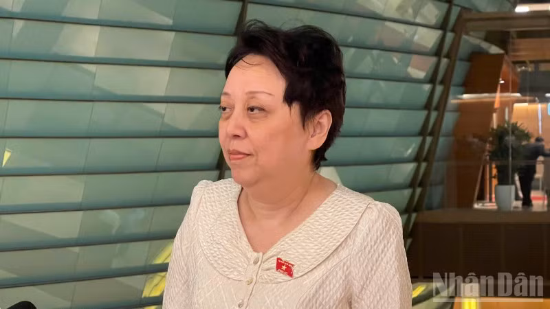 Phó Giáo sư, Tiến sĩ Phạm Khánh Phong Lan – Đoàn Đại biểu Quốc hội Thành phố Hồ Chí Minh trao đổi với phóng viên bên hành lang Quốc hội.