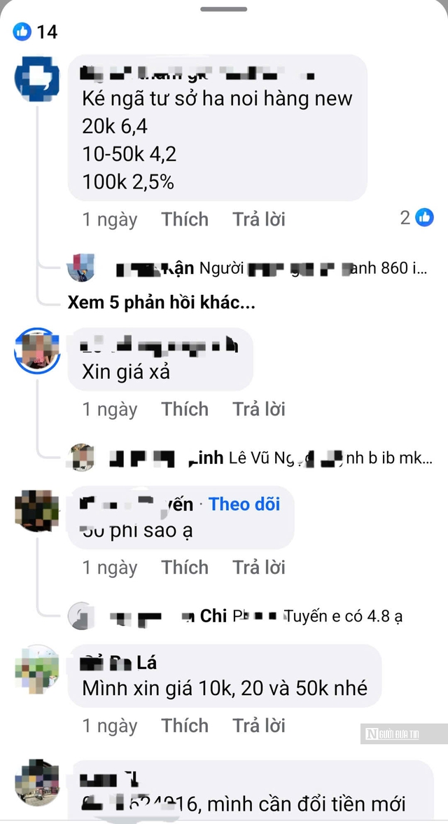 Mức phí chênh lệch được các tài khoản này đưa ra dao động từ 4% trở lên, thậm chí cao hơn đối với các mệnh giá nhỏ hoặc vào thời điểm cận Tết. Để tạo lòng tin, nhiều người đăng tải hình ảnh từng xấp tiền mới, video quay cận cảnh hoặc phản hồi của khách hàng đã giao dịch thành công.