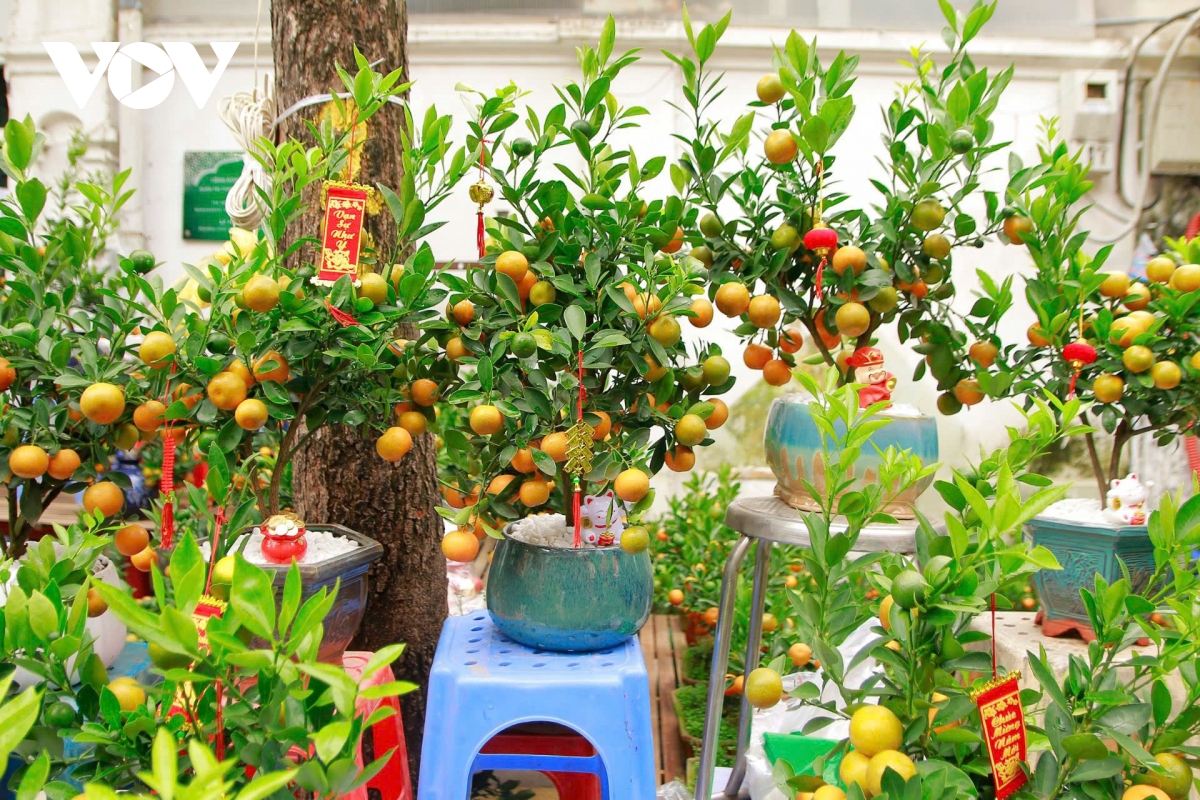 Những cây quất từ cỡ nhỏ đến vừa được bày bán tại đây hầu hết là quất Tứ Liên, Quảng An với giá thành mỗi cây dao động từ 300.000 đồng đến 1 triệu đồng.