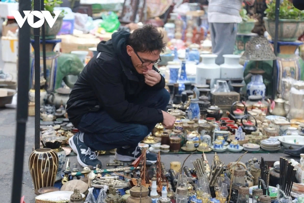 Ngoài những chậu quất, cành đào quen thuộc, một điểm nhấn đặc biệt giữa chợ hoa Hàng Lược là các quầy bày bán đồ cổ, đồ xưa cũ như tẩu thuốc, bình vôi, tượng đồng, đèn dầu hình 12 con giáp, hương nến, đồng xu… Những gian hàng này thu hút đông đảo du khách nước ngoài cũng như những người còn nặng lòng với ký ức và hoài niệm về Hà Nội xưa.
