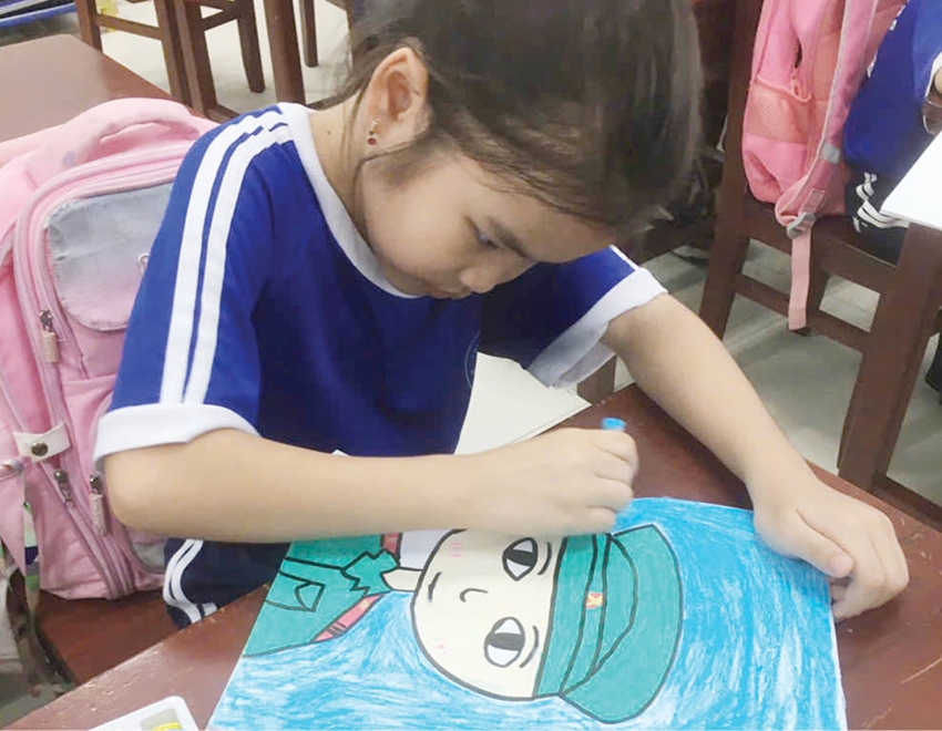 Giờ học mỹ thuật ở Trường Tiểu học Phú Bình. Ảnh minh họa: Võ Trung