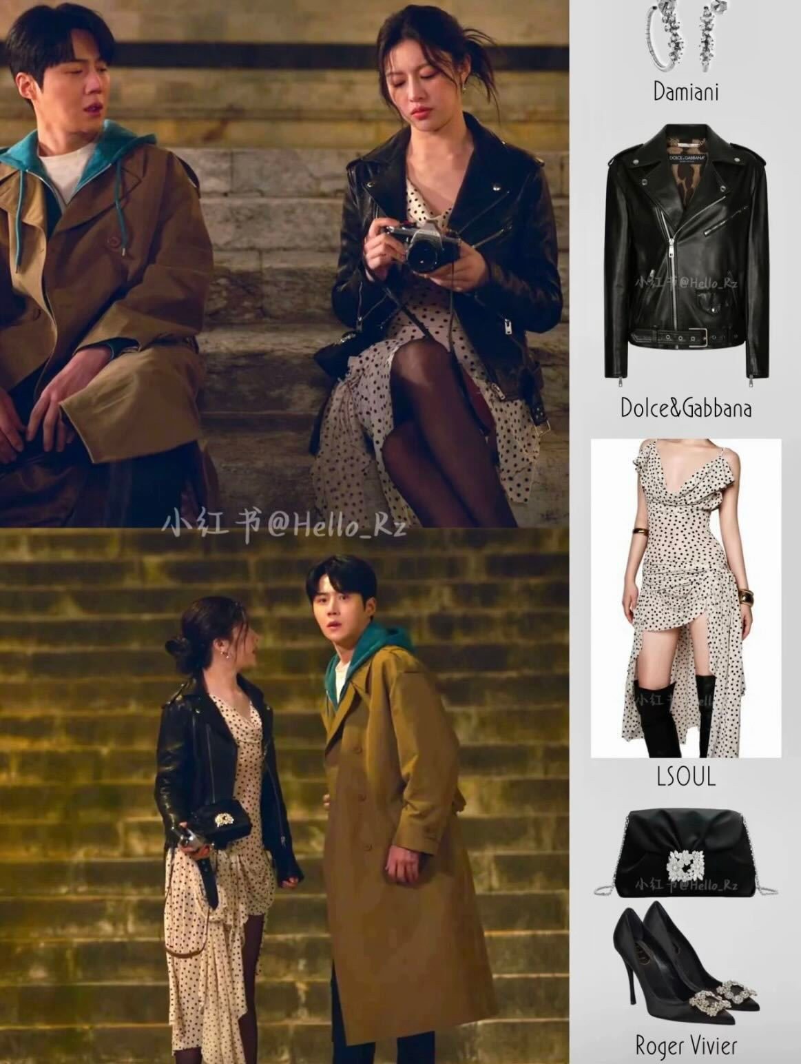 Palette màu của Ra Mi cũng đối lập hoàn toàn với Mu Hee trang nhã, thiên về tông trầm như đen, nude bẩn hay đỏ rượu, tạo cảm giác lạnh lẽo và bí ẩn. Cách phối đồ có phần phóng túng và bất cần khắc họa nên một Do Ra Mi không bị ràng buộc bởi chuẩn mực và cách nhìn của người khác như Mu Hee.