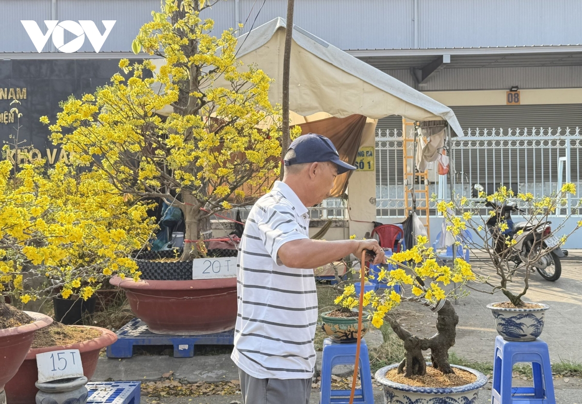 “Bán 7-8 gốc rồi, sức mua nó yếu hơn mấy năm trước. Năm nay mai bị mưa, hai mươi mấy tháng chạp mưa rồi. Mai mà để ngoài trời gặp mưa là thua rồi”, ông Đông chia sẻ.