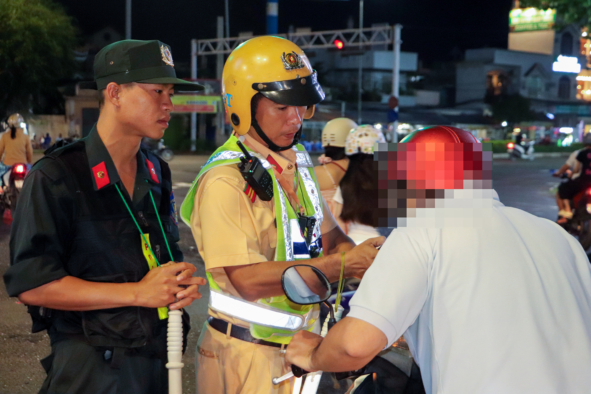 Gần 21h, phát hiện hai người đàn ông điều khiển xe máy BKS 65B2 - 7XXX có dấu hiệu say xỉn, tổ công tác yêu cầu dừng phương tiện kiểm tra. Kết quả nồng độ cồn đo được của người điều khiển phương tiện - anh T.M.H (ngụ tỉnh Hưng Yên) là 0,071mg/l khí thở.