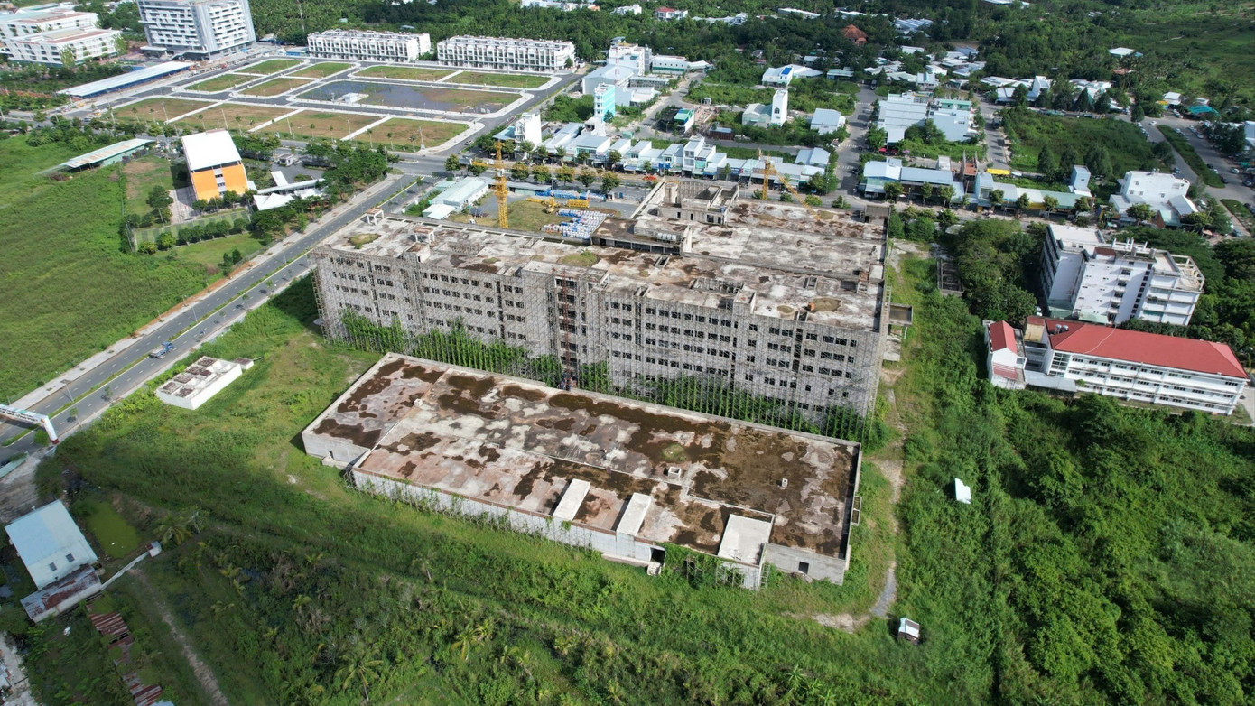 Công trình thi công từ năm 2015, đến nay các gói thầu xây dựng đã hoàn thành khoảng 82% phần thô, nhưng từ tháng 7/2022 đã phải tạm dừng thi công tới nay do hết hạn rút vốn Hiệp định vay.