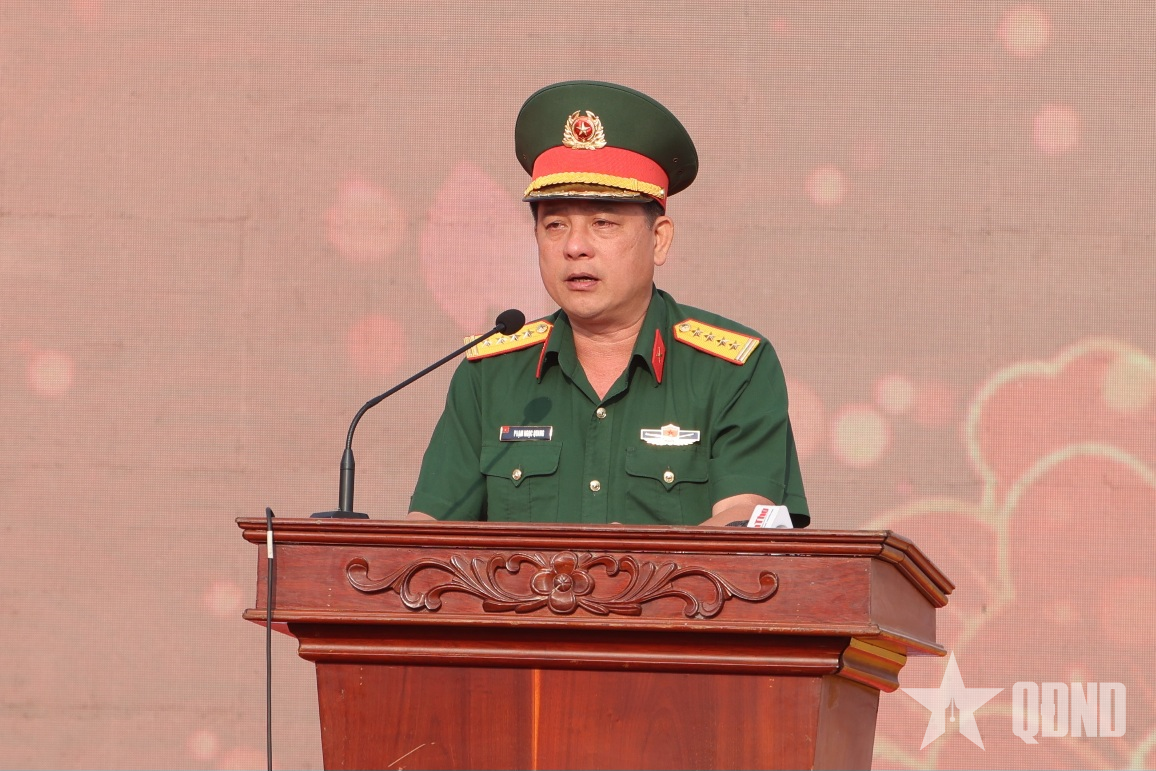 Đại tá Phạm Ngọc Quang, Chính ủy Bộ CHQS TP Cần Thơ phát biểu tại khai mạc chương trình Tết quân dân.