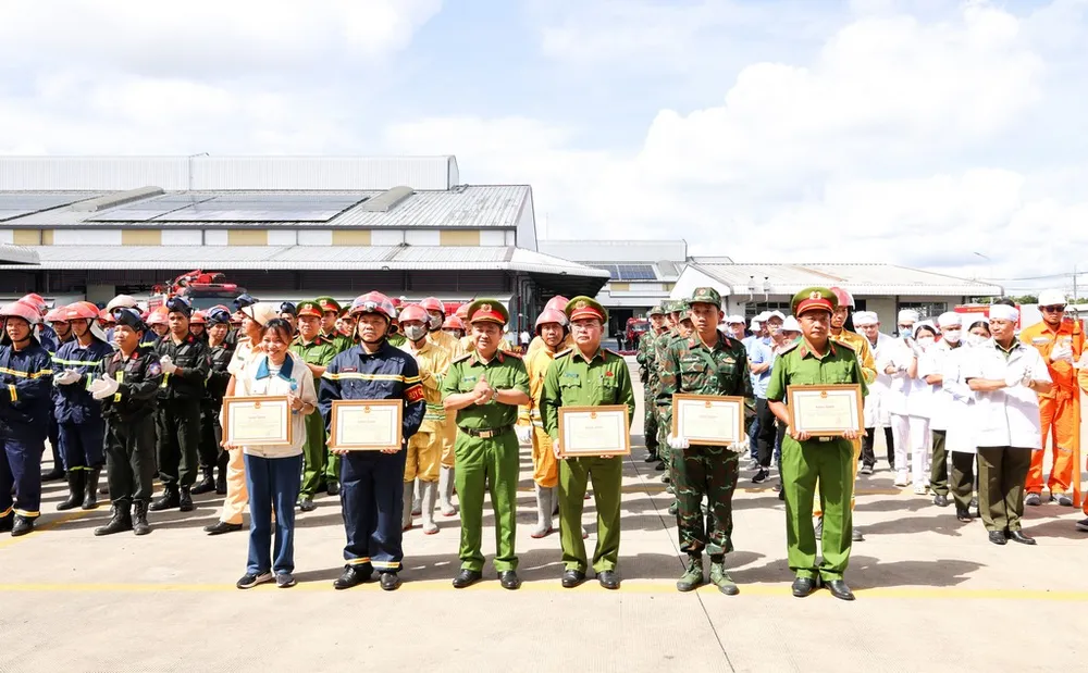 Phát biểu chỉ đạo, Đại tá Lê Đức Bảy nhấn mạnh công tác PCCC và CNCH có vai trò đặc biệt quan trọng trong bảo vệ tính mạng, tài sản của nhân dân và doanh nghiệp, góp phần bảo đảm ổn định, phát triển kinh tế - xã hội. Ông yêu cầu các lực lượng thường xuyên rèn luyện, chủ động xây dựng phương án, sẵn sàng xử lý sự cố theo phương châm “4 tại chỗ”.