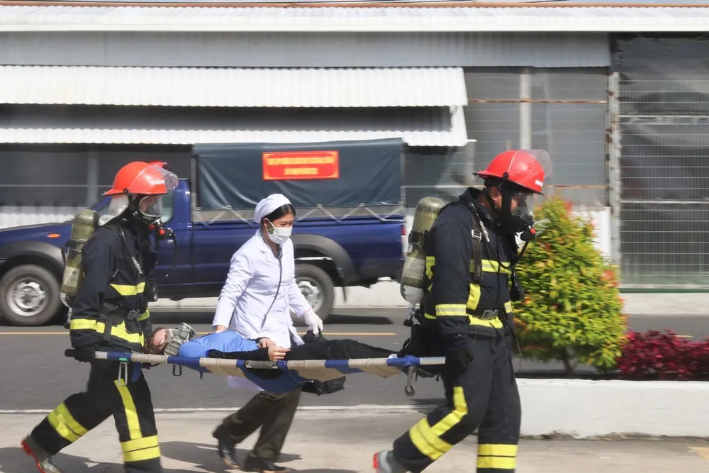 Theo tình huống giả định, lúc 8 giờ 30, do ảnh hưởng dư chấn từ trận động đất 8,0 độ Richter, một phần xưởng của công ty bị sập, hệ thống điện chập cháy lan rộng trên diện tích khoảng 2.000 m², khiến 20 công nhân mắc kẹt, nhiều người bị ngạt khói.