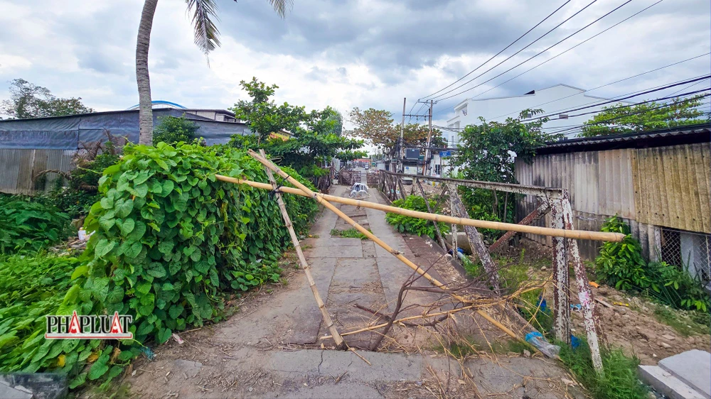 Từ sau sự cố sập cầu ngày 21-5-2025, ngành chức năng đã rào chắn không cho các phương tiện qua cầu; đường Tầm Vu bị chia đôi, gây khó khăn cho người dân lưu thông. Ảnh: CHÂU ANH