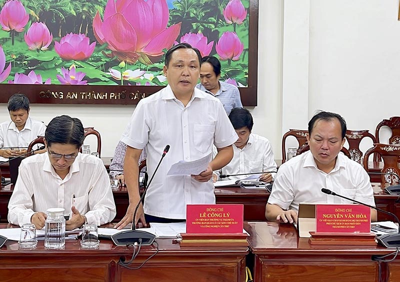 Ông Lê Công Lý - Trưởng Ban Quản lý các khu chế xuất và công nghiệp Cần Thơ báo cáo tình hình các khu, cụm công nghiệp trên địa bàn thành phố tại buổi làm việc với Thường trực Thành ủy Cần Thơ.
