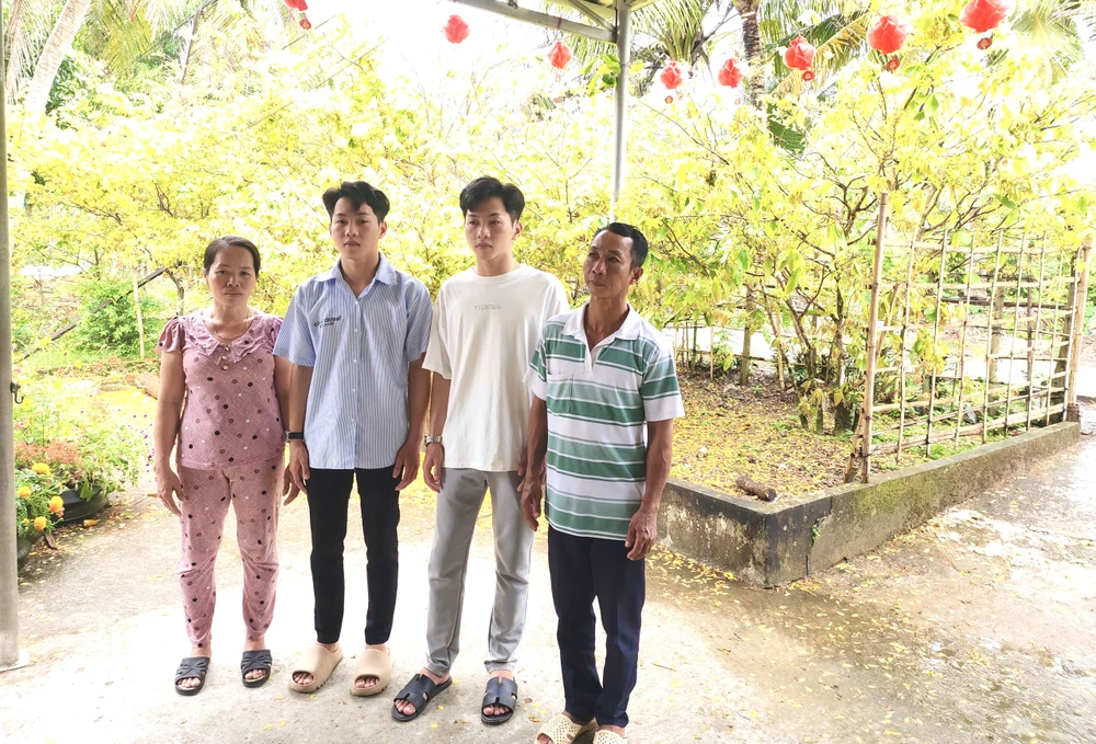 Trong bữa cơm gia đình cận ngày nhập ngũ, ông nội và cha mẹ căn dặn các em về trách nhiệm của tuổi trẻ với quê hương. Cha của hai em, ông Đào Thanh Ngoan (45 tuổi) cho biết gia đình có ba người con, kinh tế chủ yếu từ vườn sầu riêng, mít.