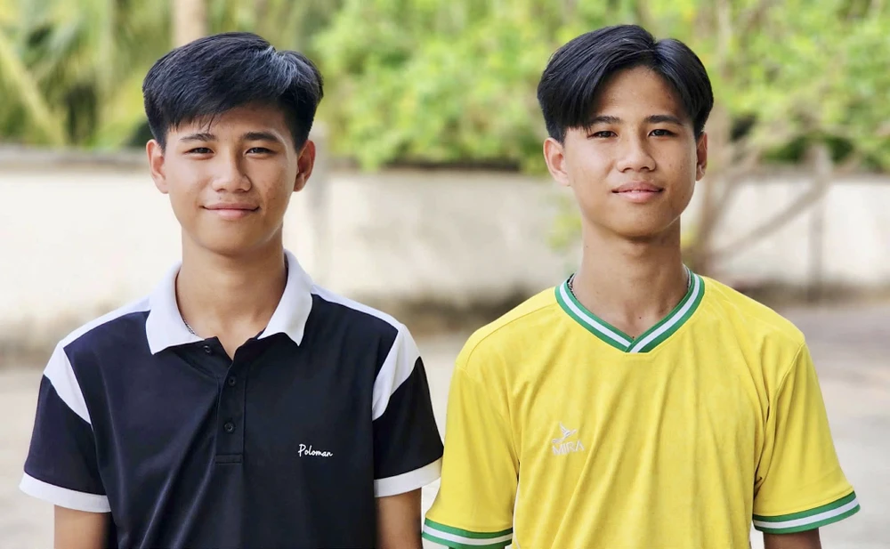 Anh em Nguyễn Quốc Huy và Nguyễn Quốc Hoàng là 1 trong 3 cặp song sinh tại Cần Thơ cùng trúng tuyển nghĩa vụ CAND. Ảnh: Xuân Lương