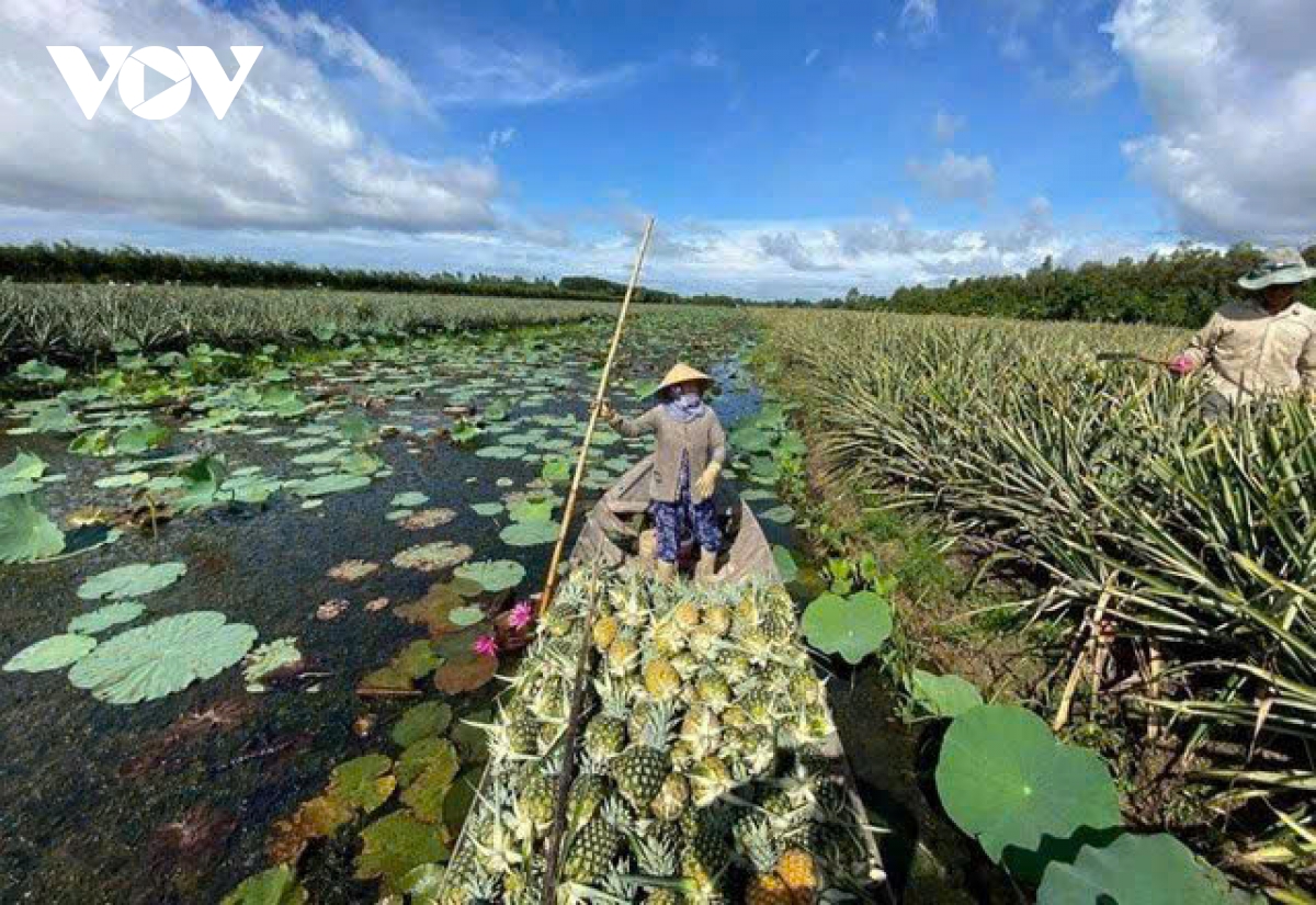 Anh Võ Thanh Tùng ở xã Long Hưng cho biết, thời gian trước anh trồng mía, chuối nhưng không mang lại hiệu quả cao do vùng đất này bị nhiễm phèn nặng, trũng thấp. Cách nay 3 năm anh chuyển sang trồng cây khóm MD2.