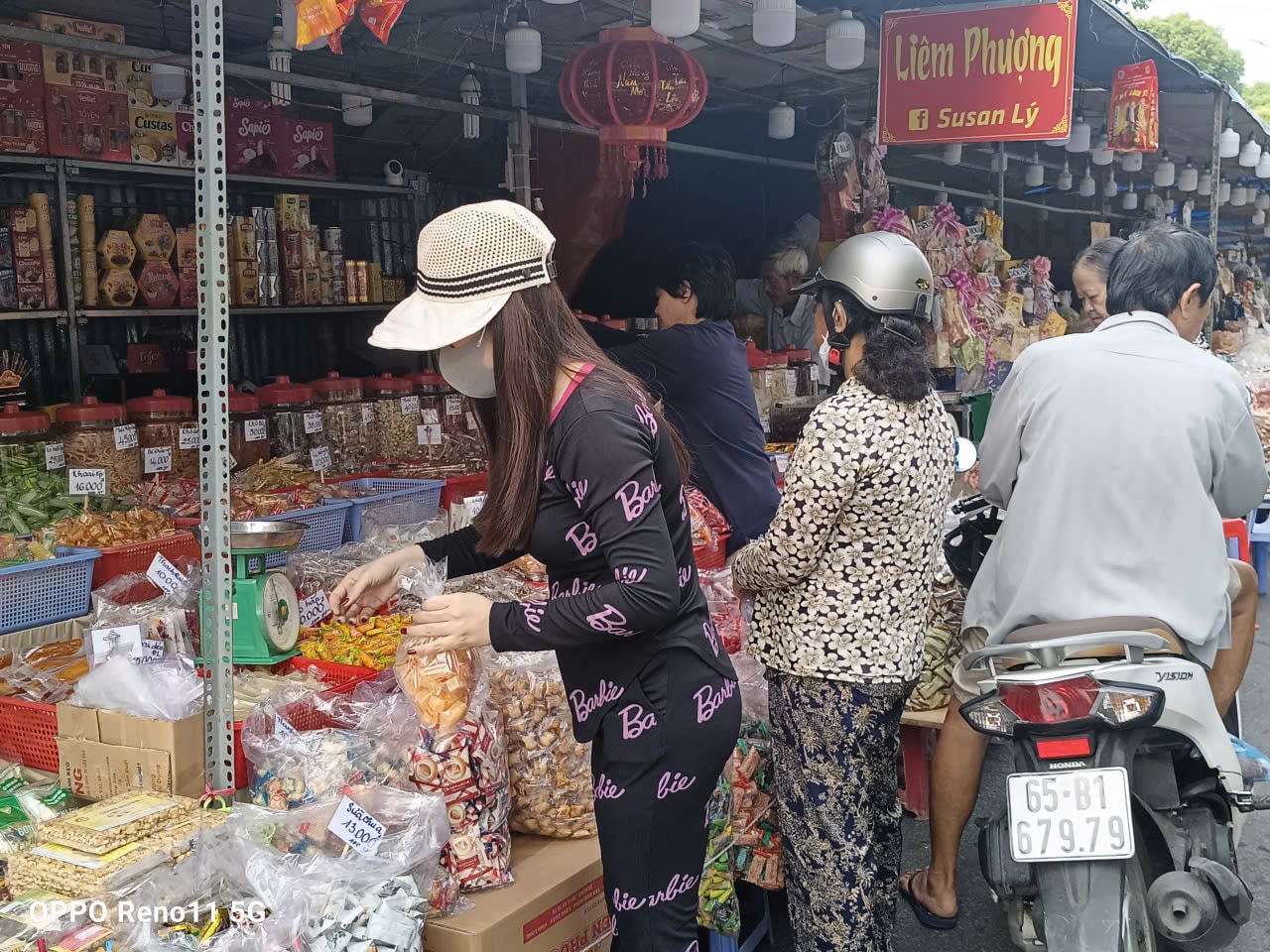 Nhiều cửa hàng bánh mứt kẹo mới mọc lên, bán hàng Tết trên tuyến Châu Văn Liêm. Tại quầy bánh Liêm Phượng, dù bận bán hàng không ngớt tay, anh Liêm vẫn vui vẻ cho biết năm nay chợ đến sau 20 Tết mới khởi động, nhưng nay hàng đã bán chạy. Kẹo mứt năm nay phần lớn tăng giá khoảng 10% so với Tết 2025.