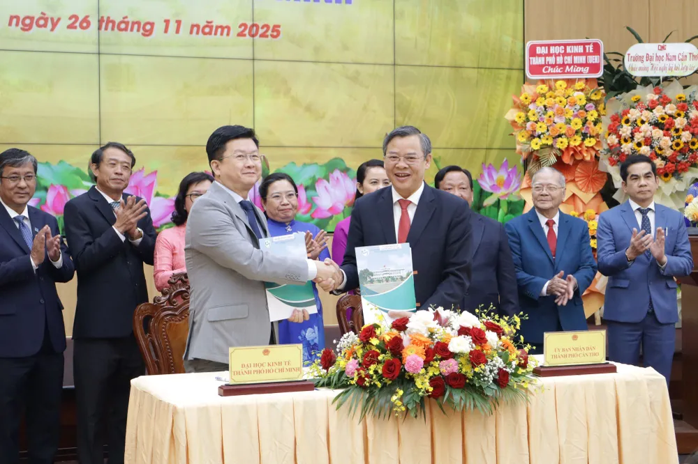 Chiều 26-11, UBND TP Cần Thơ tổ chức Hội nghị ký kết bản ghi nhớ hợp tác với sáu trường đại học (ĐH) gồm ĐH Cần Thơ, Y dược Cần Thơ, Kinh tế TP.HCM, Nam Cần Thơ, Tây Đô và Võ Trường Toản.