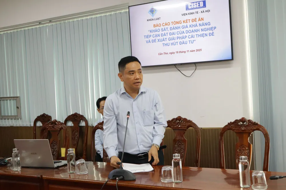 Chiều 19-11, lãnh đạo UBND TP Cần Thơ họp Hội đồng nghiệm thu Đề án “Khảo sát, đánh giá khả năng tiếp cận đất đai của doanh nghiệp (DN) và đề xuất giải pháp cải thiện để thu hút đầu tư”. Đề án do Viện Kinh tế xã hội TP và Khoa Luật, Đại học Cần Thơ chủ trì thực hiện.