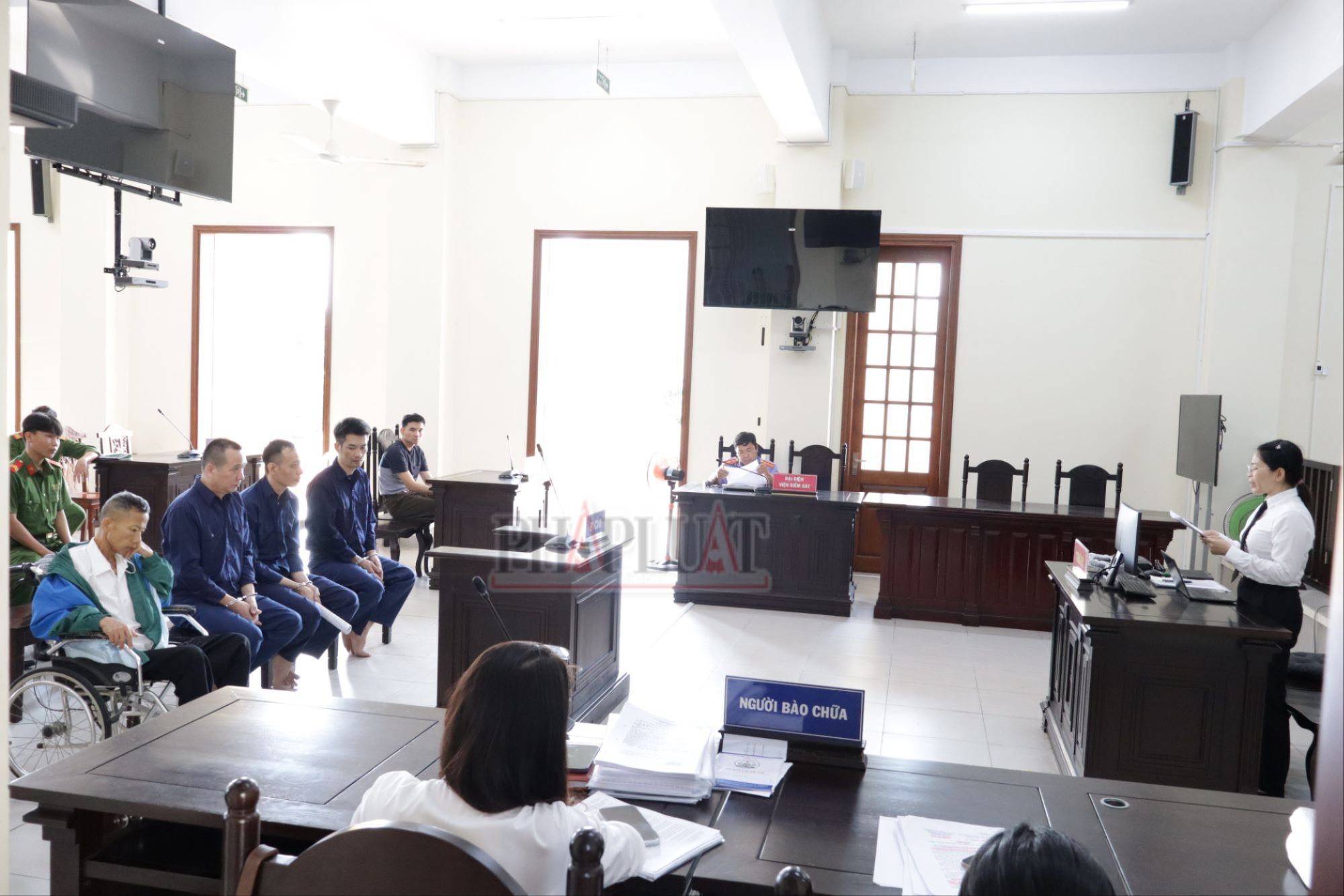 Bị cáo Thừa (ngồi xe lăn) tỏ ra khá mệt mỏi. Ảnh: NHẪN NAM