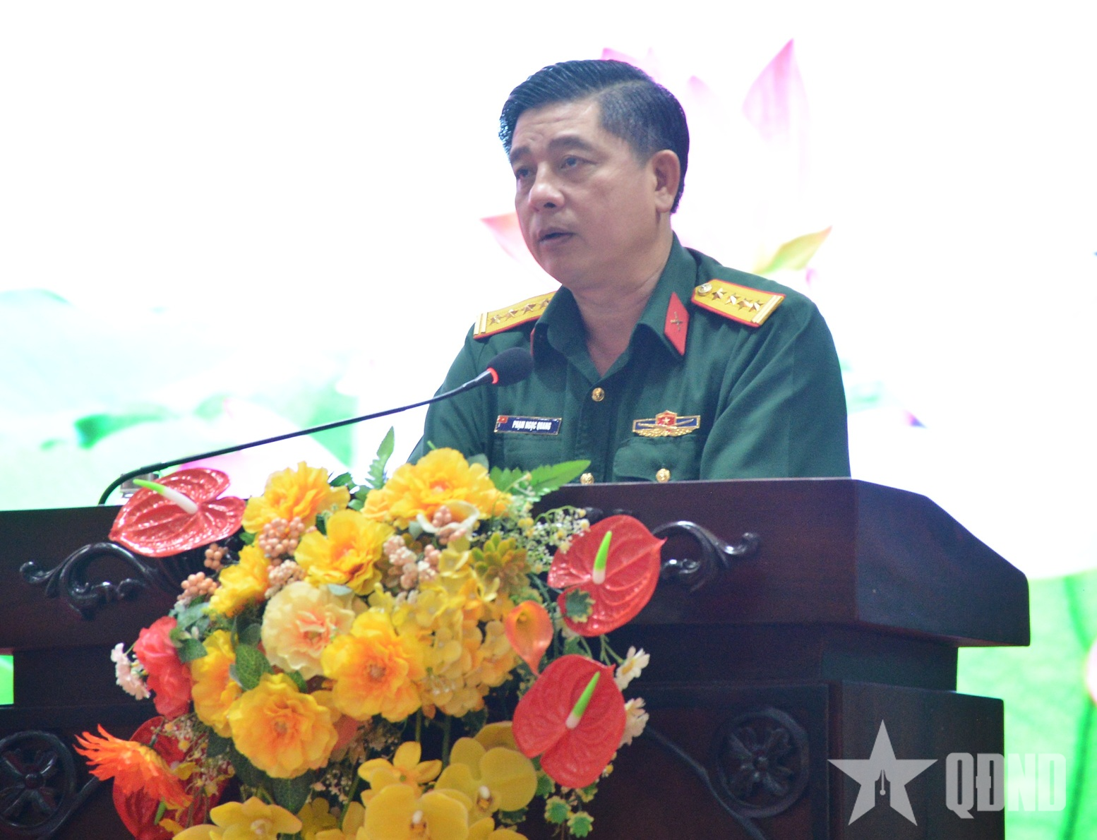 Đại tá Phạm Ngọc Quang, Chính ủy Bộ CHQS TP Cần Thơ phát biểu tại hội nghị.