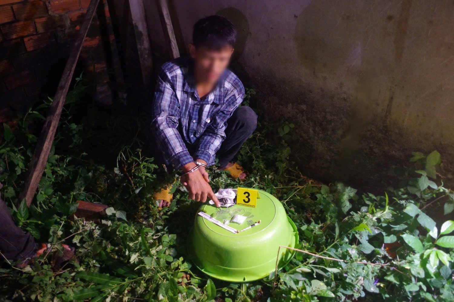 Đối tượng Huỳnh Vũ Thanh xác nhận tang vật tại hiện trường.