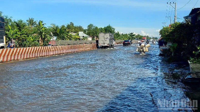 Theo báo cáo của Khu Quản lý đường bộ IV (Cục Đường bộ Việt Nam), sáng 11/10, triều cường dâng cao đã gây ngập cục bộ trên tuyến Quốc lộ 1, đoạn Km2107-Km2109 (phía phải tuyến, qua địa phận thành phố Cần Thơ).