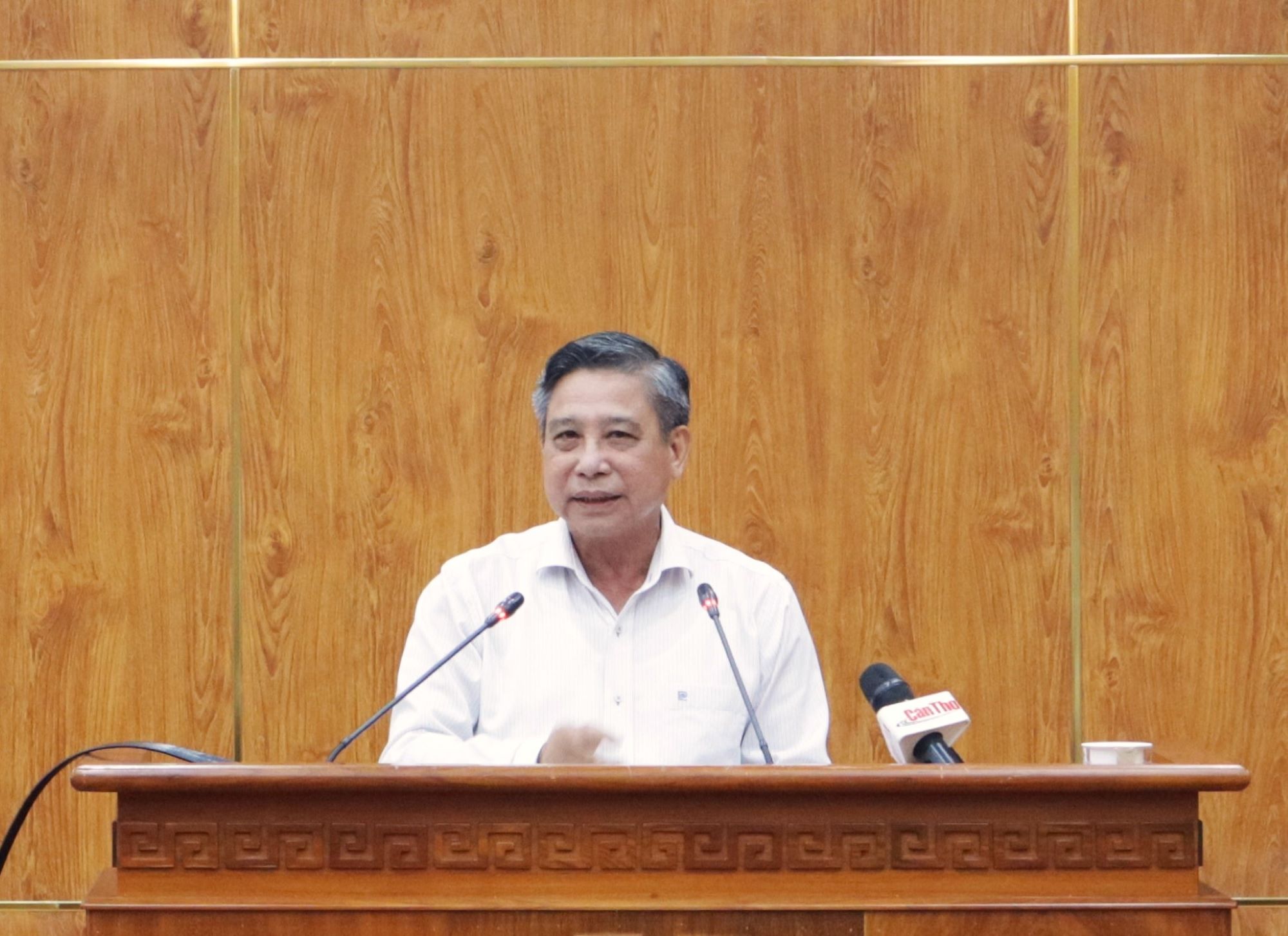 Ông Đồng Văn Thanh, Phó Bí thư Thường trực Thành ủy, Chủ tịch HĐND TP, Chủ tịch Ủy ban Bầu cử TP Cần Thơ phát biểu chỉ đạo. Ảnh: NHẪN NAM