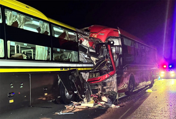 Hiện trường một vụ tai nạn xe khách giường nằm tông nhau.