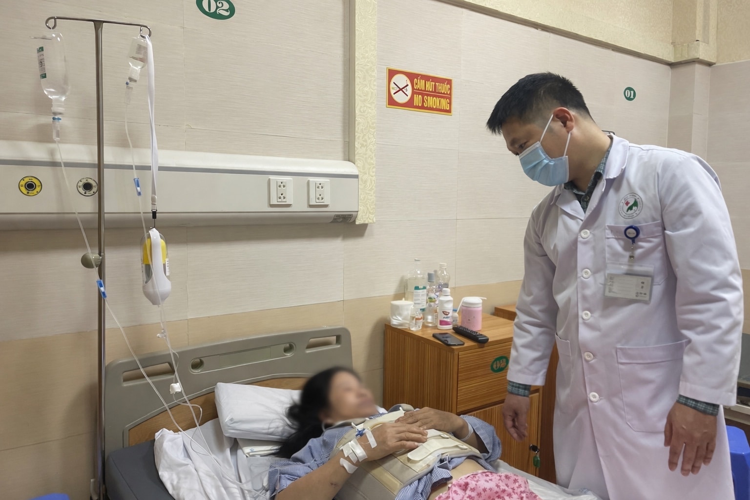 Bệnh nhân bị ngã do bước hụt cầu thang được chăm sóc, điều trị tích cực tại Bệnh viện Đa khoa Đức Giang. Ảnh: Thu Trang