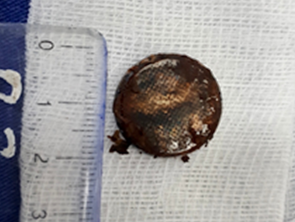 Dị vật trong cơ thể bệnh nhi được bác sĩ Bệnh viện Tai - Mũi - Họng trung ương gắp ra thành công. Ảnh: BVCC