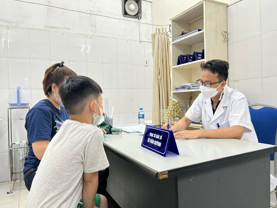 Bác sĩ tư vấn cho trẻ đến khám do cong vẹo cột sống. Ảnh: BV Hữu nghị Việt Đức