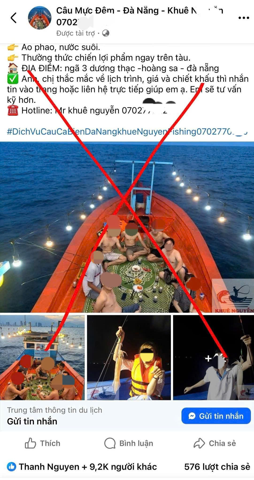 Theo Đồn Biên phòng Sơn Trà, thời gian gần đây xuất hiện tình trạng một số chủ tàu cá ở khu vực Bán đảo Sơn Trà và vùng biển lân cận tự phát cung cấp dịch vụ du lịch trải nghiệm trên biển, đặc biệt là “câu mực đêm ngắm thành phố từ khơi xa”. Trên các nền tảng Facebook, TikTok, không khó để bắt gặp những video, bài đăng mời gọi du khách tham gia trải nghiệm với lời giới thiệu hấp dẫn, giá chỉ từ vài trăm nghìn đồng mỗi người.