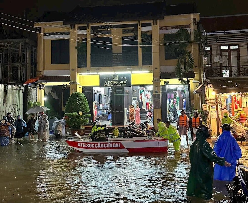 Lực lượng chức năng Hội An đã phải ứng cứu người dân và du khách trong những trận ngập lụt hàng năm