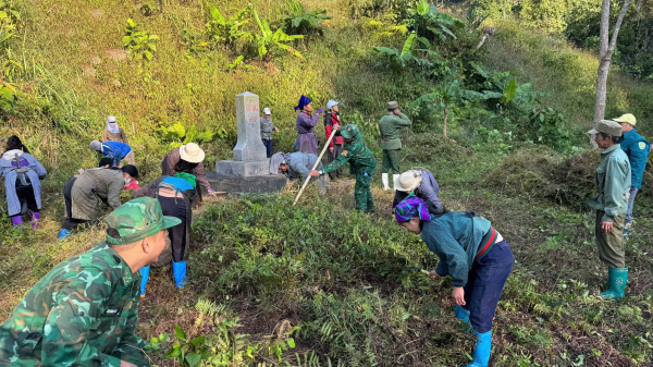Công an xã và Đồn Biên phòng Cần Yên cùng nhân dân phát quang đường biên, cột mốc.