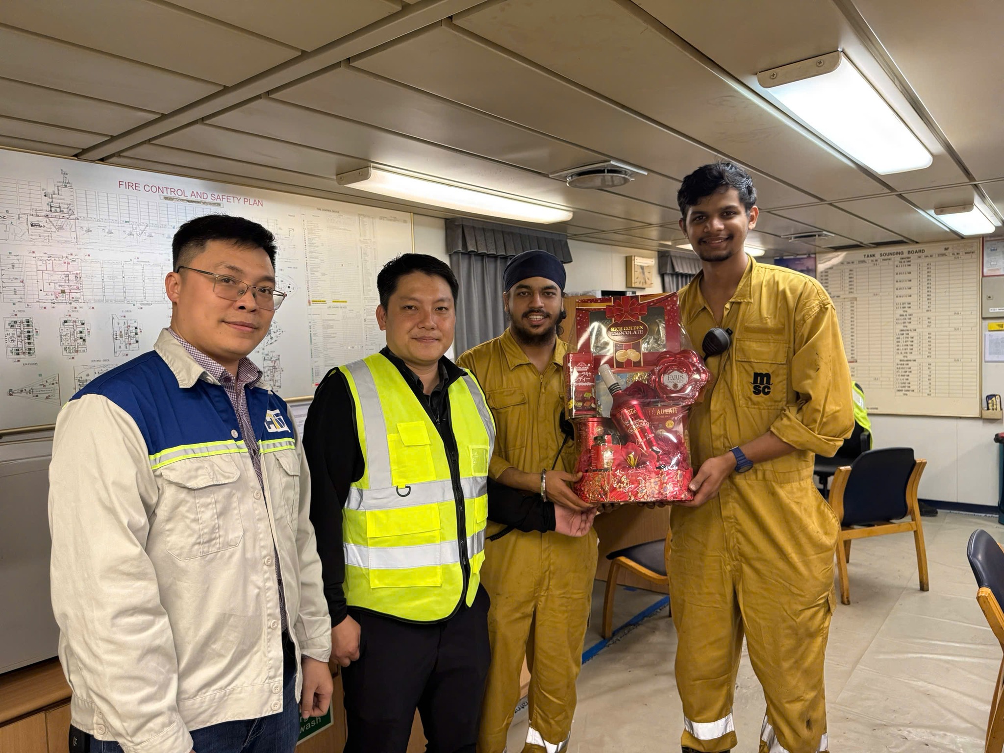 Đại diện Cảng HTIT chúc Tết các thuyền viên nước ngoài khi tới "xông đất" cảng biển đầu năm.