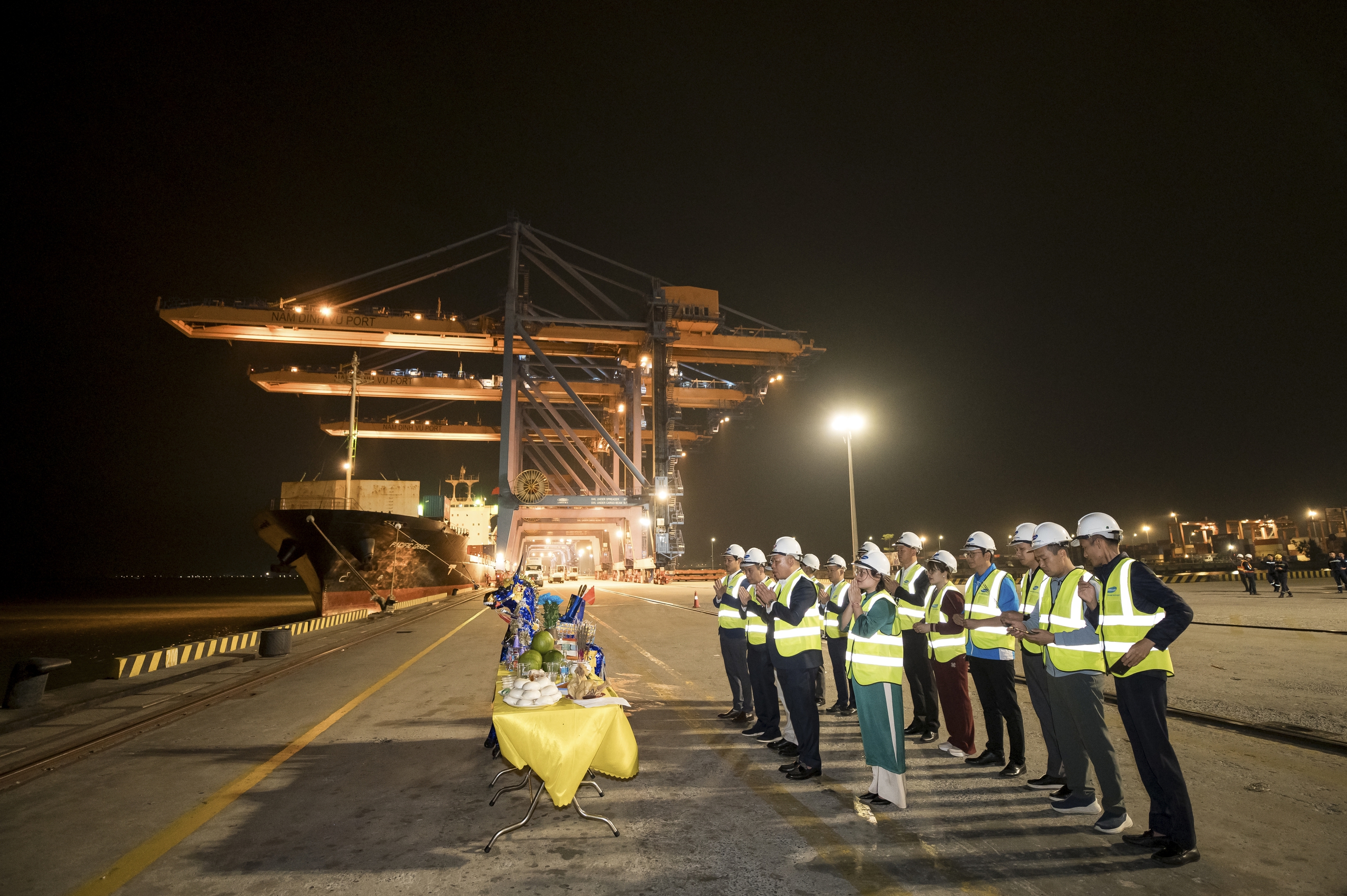 Ngay trong đêm Giao thừa, Cảng Nam Đình Vũ tại Hải Phòng đã bận rộn với các chuyến tàu "xông đất" đầu năm. Chuyến tàu của hãng tàu Green Pacific cập cảng, xếp dỡ 633 Teu hàng hóa, khơi mở một năm được kỳ vọng nhiều thành tựu.